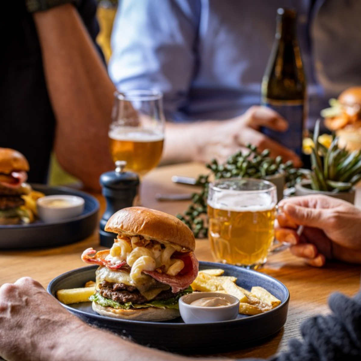 Dirty burger, double burger, streaky bacon, mac & cheese, crispy onions, beef dripping gravy | 17.50 1296 kcals